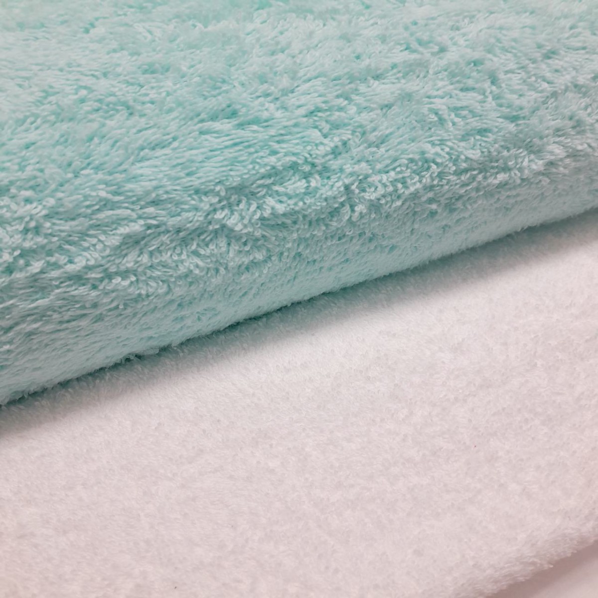 Tejido felpa o rizo especialmente indicado para bebé por su composición 100% algodón (antialérgico) y su tacto suave y mullido.