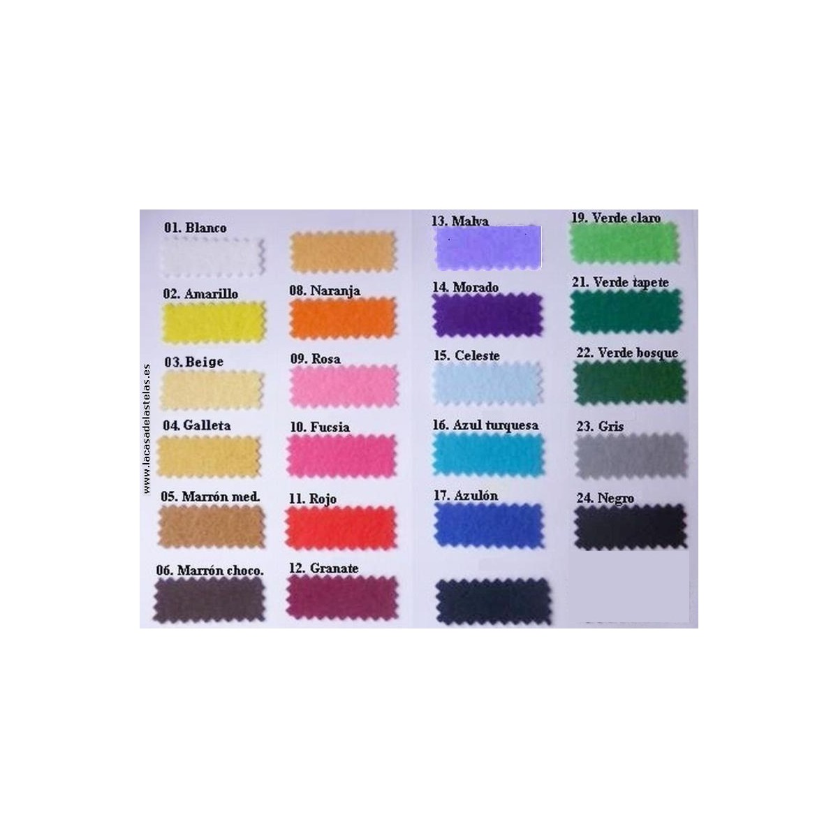 Fieltro venta por rollos completos. Gama de 25 colores disponibles. Optimiza al máximo el precio por metro adquiriendo rollos completos. También puedes acceder a la compra por metros pinchando aquí . Ancho 90 cm. Composición: 100% acrílico. Cantidad de metros por rollo: 25 metros.