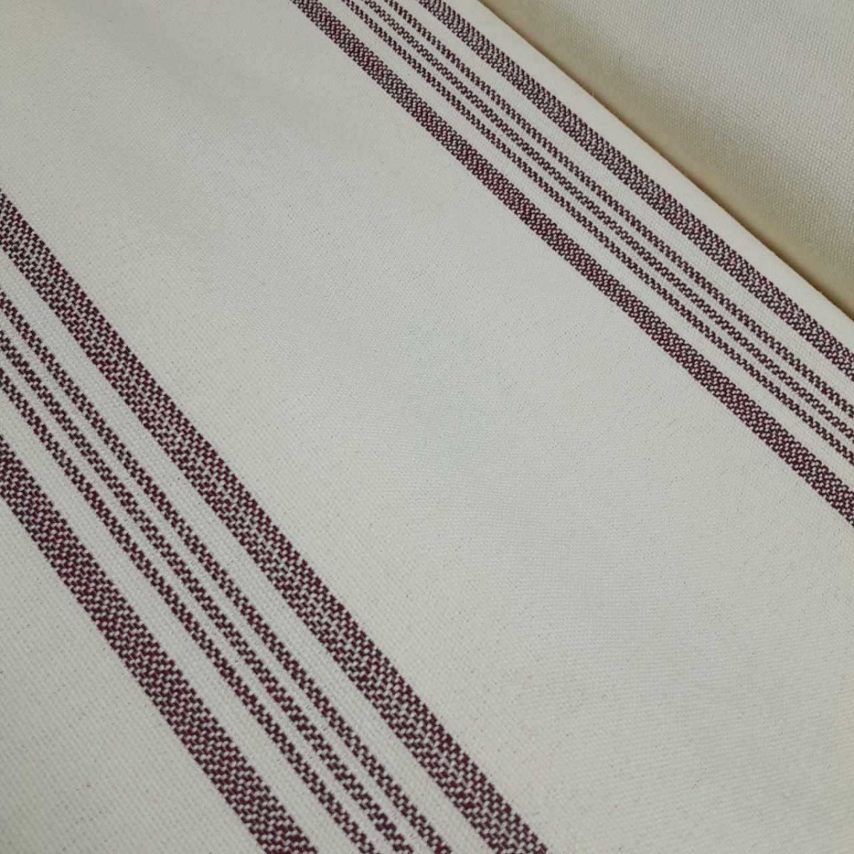 • Descripción: Tejido fuerte y grueso con la base en color crudo y raya tejida en color granate.