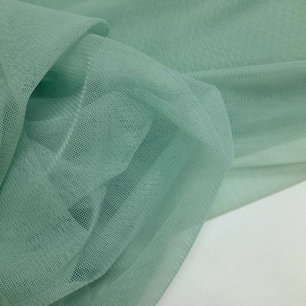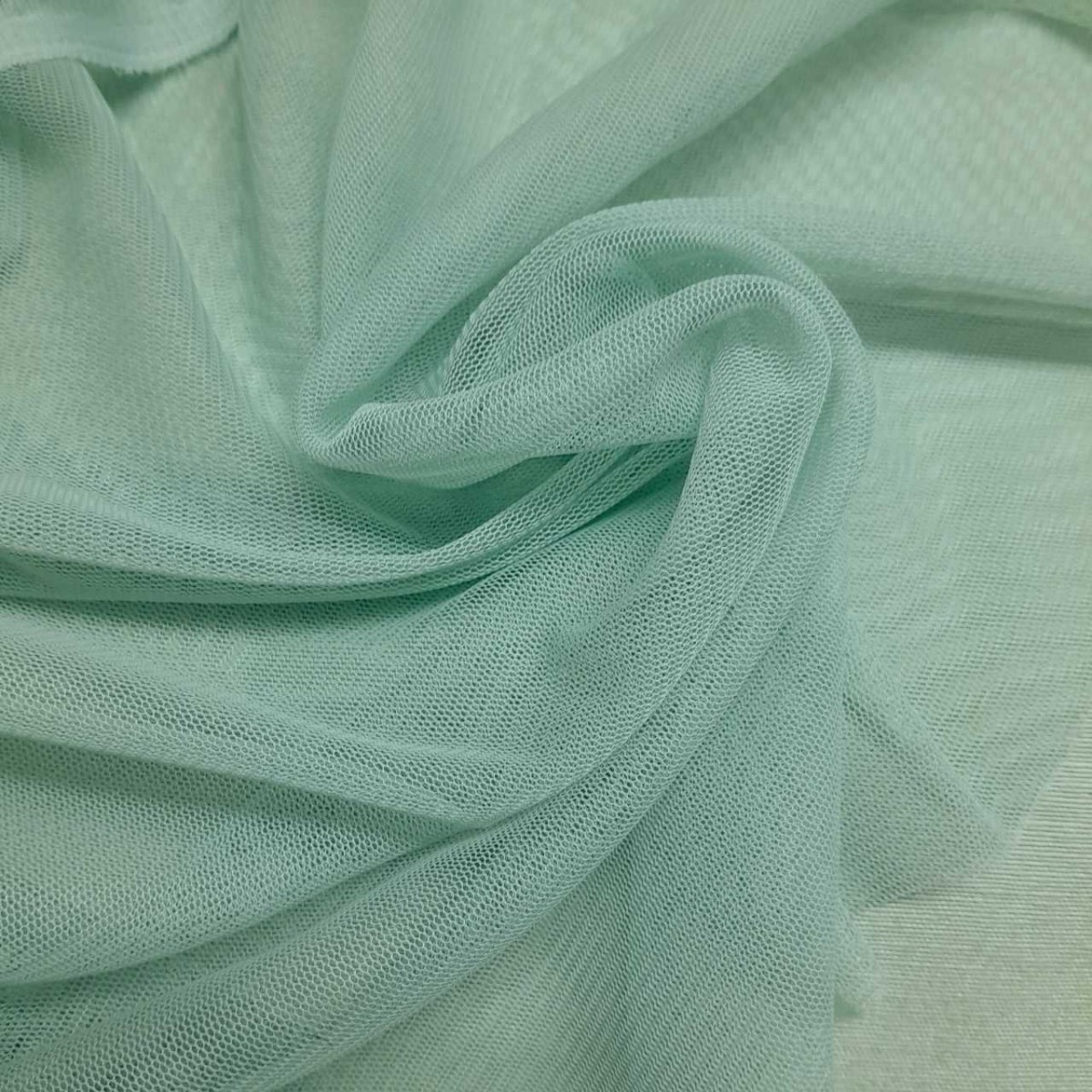 Tul suave color verdeagua, también llamado tul caido o tul de velo o tul mórbido. No se trata del tul clásico rígido de disfraces, es un tul con mucha mas caida, muy suave y muy  blandito. Ancho 1,50. ***PARA CANTIDADES DE MAS DE 15 METROS CONSULTAR PRECIO***